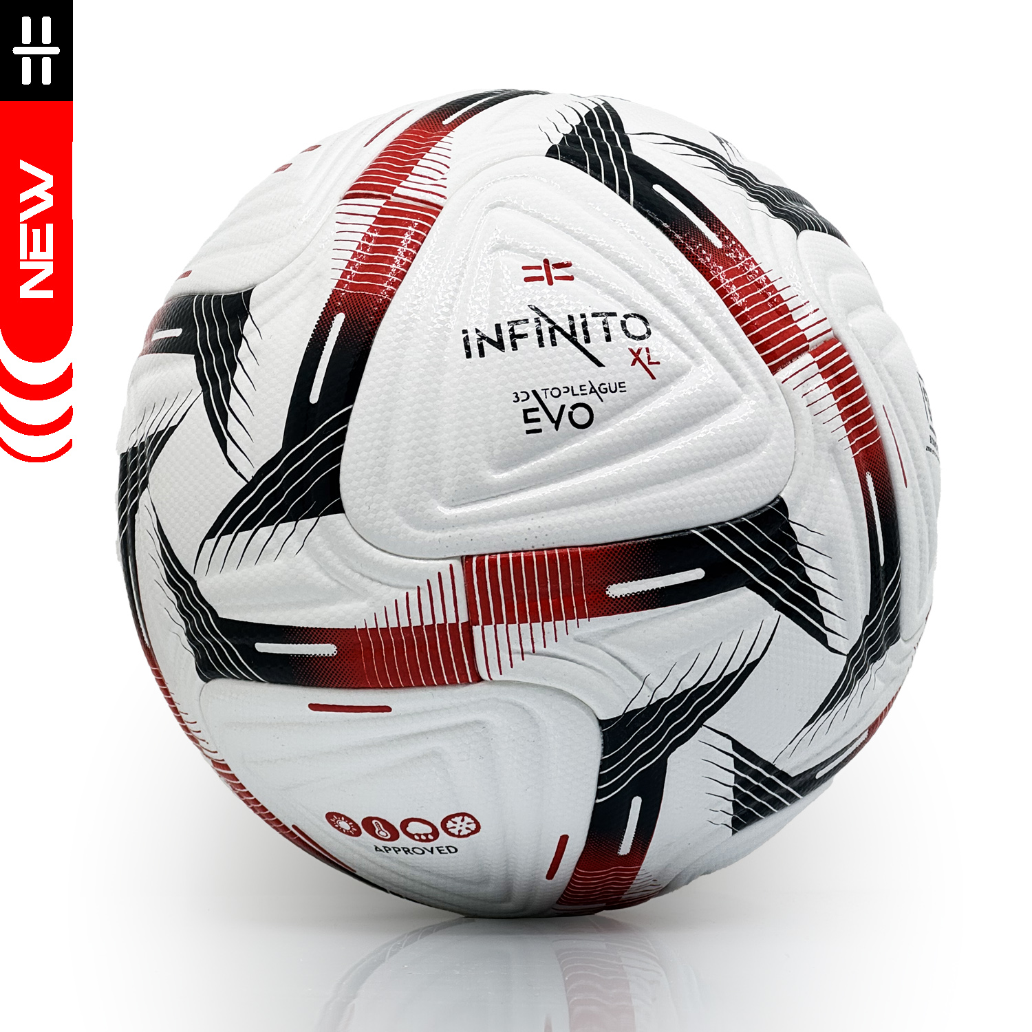 INFINITO XL: il Pallone TOP LEAGUE di alto livello destinato ai club di massima serie, progettato dai dipartimenti PRIMATO per le gare ufficiali utilizza la più avanzata tecnologia costruttiva TB Balanced Technology.